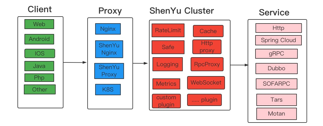 Apache ShenYu (incubating)是一个高性能,多协议,易扩展,响应式的API网关。 兼容各种主流框架体系,支持热插拔,用户可以定制化开发,满足用户各种场景的现状和未来需求,经历过大规模场景的锤炼。 支持丰富的协议:HttpSpring CloudgRPCDubboSOFARPCMotanTars等等。